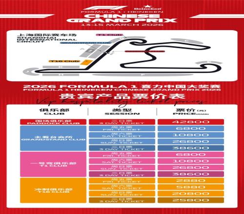 为了进一步加大市场供给,2026F1喜力中国大奖赛在现有观赛资源的基础上持续深挖,打造出了结构更丰富、场景更多样的票务产品体系。