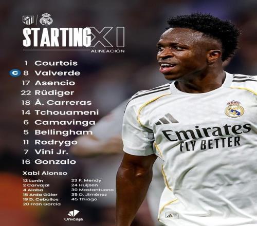 皇马vs马竞:维尼修斯PK阿尔瓦雷斯,罗德里戈、贝林厄姆出战