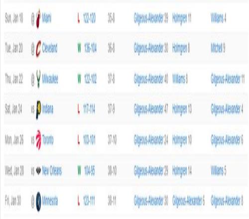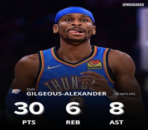 落后16分末节仅打2分钟SGA轰30+8+6背锅雷霆近7战4负难比去年