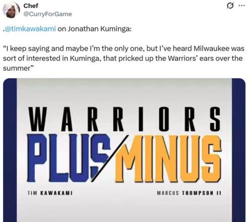 除此之外,湾区名记Tim Kawakami在《PlusMinus》曝出雄鹿队一直对都库明加挺感兴趣。