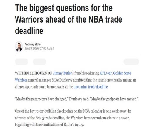 与以往十分吝啬首轮签不同,勇士队认为这一次是完全不同级别的交易,所以愿意为此付出巨大的代价,同时勇士管理层承认此前的“双线策略”过去几年耽误了库里,所以努力想要为其引进合适的搭档。
