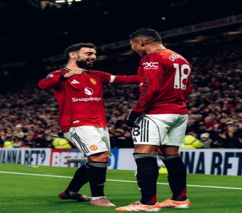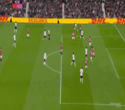 比赛刚刚开打第5分钟,曼联就给了客队一个下马威,阿玛德右路内切后兜射远角,被富勒姆门将飞身扑出,第16分钟库尼亚突入禁区后倒地,为曼联赢得点球,不过主裁判回看VAR后改判禁区外任意球,B费挑传后点,卡塞米罗头球建功,帮助曼联取得了1-0的领先,最近10场比赛狂造12球的B费,也以11次助攻领跑英超助攻榜。